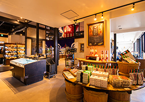 「五階菱」は江戸から続く酒蔵を全面改装した空間。コンシュルジュによる利き酒や試飲体験、プロジェクションマッピングによる驚きの体験など城下町新発田・食と文化の魅力を一手に受け取れる体感型リゾート施設です。また、越後・新発田の食と酒・土産など、厳選した地産品を取り揃えたお土なども販売しております。
