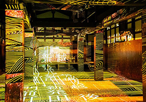 その昔、酒造りが行われていた「旧仕込蔵」をプロジェクションマッピングが楽しめる空間に改築し、新しい酒蔵体験を楽しめます!舞い散る花びらや打ち上げ花火が迫力ある音響とともに壁や床全体に映し出され、日常とは異なる時間と空間を存分にお楽しみ下さい。 |