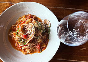 ⑥駅南けやき通りの「ワイン食堂 Paz」にて開催!飲食もご提供いたします。